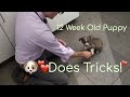 It's never too early to start teaching tricks to your puppy. The Bow Tie Vet Guy tests this 12-week old puppy on his tricks! He's been with his new family for only 3 weeks!! Definitely, a perk of being a veterinarian.